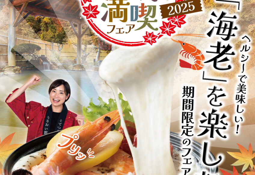 残暑が厳しい9月中旬。まだ日中の気温は高いですが、朝晩は秋の気配も感じる頃となりました。 今年もうるおい館は、秋のフェアを開催します。温泉で心身をリフレッシュしながら、レストランでは「海老」を使ったメニューをご提供。 ...