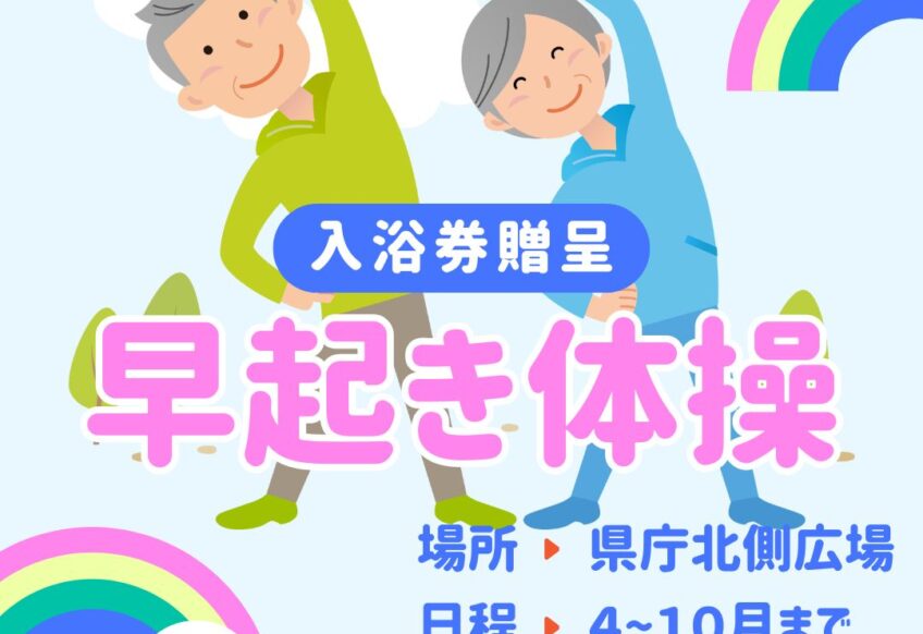 うるおい館では地域貢献の一環として地元で活動する「早起き体操」の継続的に応援をしております。 今年度もサークル「裾花会」を、温泉を通じてサポートさせていただきます。 体操に10回参加すれば、うるおい館で1回入浴が可能。...