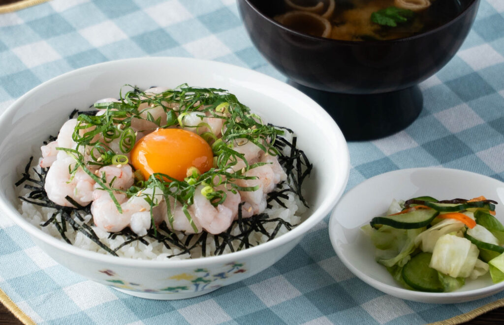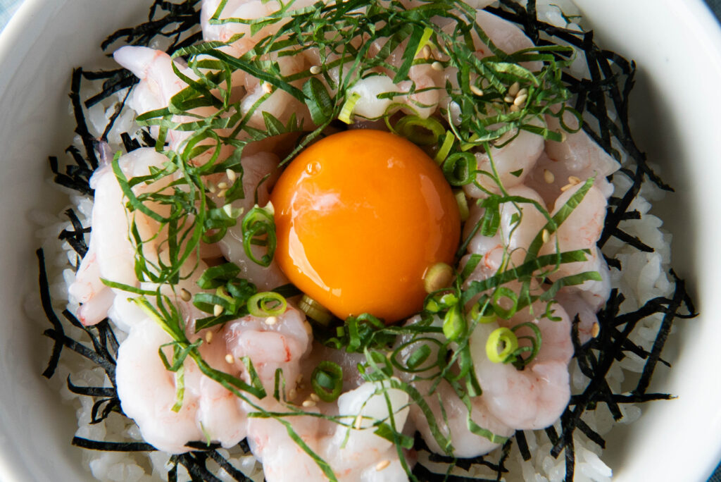 トッピングの卵黄が甘海老と絡んで、まろやかさとコクを倍増。シンプルで贅沢な丼です。
