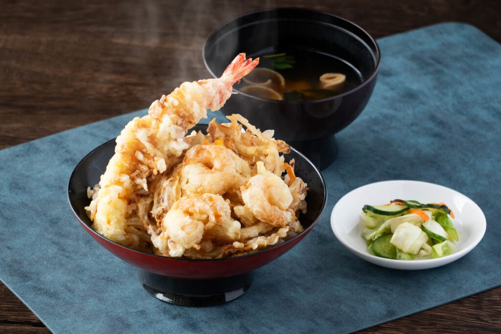 ●海老かき揚げ丼(味噌汁、香の物) 850円