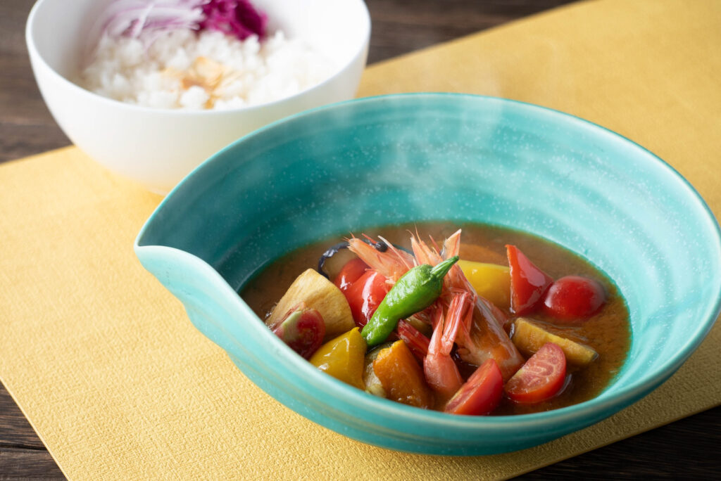 フレンチスタイルの本格スープカレーは、車海老の上品な旨味とコクがたっぷりと。