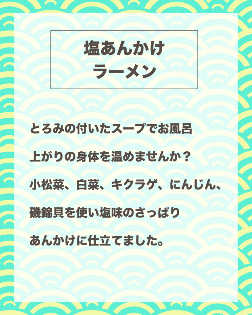 【お知らせ】とろ〜り塩あんかけのふゆめんが登場! 2025.01.31 Tweet Share とろ〜り塩味あんかけがたまらない!塩あんかけラーメンが登場! 販売は2月7日(土)〜3月6日(金)まで! ぜひご賞味ください! Tweet Share